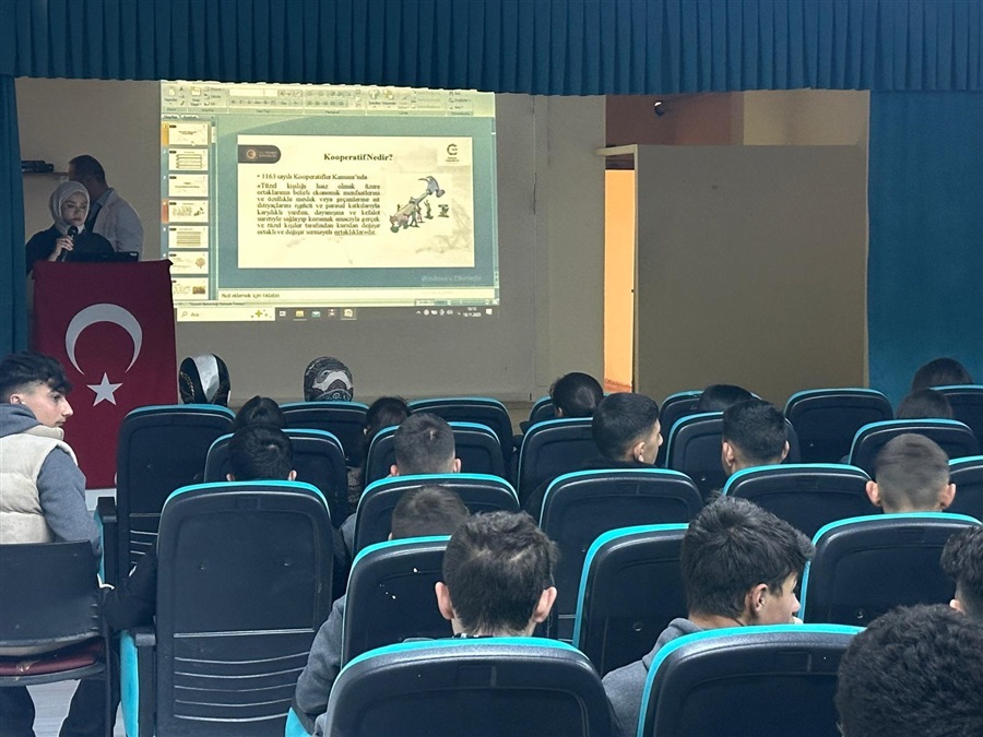 18 Kasım 20252025 Yılı Uluslararası Kooperatifler Yılı etkinlikleri kapsamında, Ardahan Ticaret İl Müdürlüğü olarak kooperatifçilik kültürünün yaygınlaştırılması ve gençlerde ekonomik farkındalık oluşturulması amacıyla gerçekleştirilen eğitim çalışmalarımız devam etmektedir.Bu çerçevede, Ardahan Merkez Şehit Er Serhat Şanlı Ticaret Meslek ve Teknik Anadolu Lisesinde Müdürlüğümüz personeli tarafından “Kooperatifçilik ve Temel Ekonomik Bilinç” konulu bilgilendirme semineri düzenlenmiştir. Seminere yaklaşık 150 öğrenci katılım sağlamış;